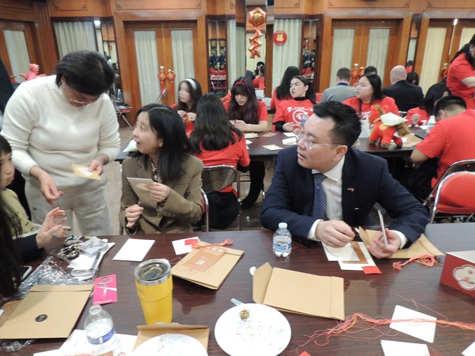 【芝加哥侨学网记者王坚报道】2月2日上午,在中国驻芝加哥总领馆,总领馆举办"55之友"春节联欢会暨"走进总领馆"活动。曾参加“5年5万"赴华交流学习的林肯公园高中Lincoln Park High School、威廉·霍华德·塔夫特高中William Howard Taft High School、威斯汀豪斯学院预备高中George Westinghouse College Prep High School的学生、中文老师、校领导等有关人员参加了活动。