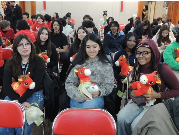 林肯公园高中学生展示中文书法和马年绘画作品