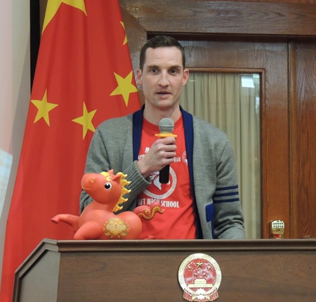 威廉·霍华德·塔夫特高中校长Ryan Glowacz强调教育的目的是建设美好的世界。自己曾访问西安,并写了研究论文。中美学生交流加强了中美两国的联系。很高兴塔夫特高中与山东济南九中建立合作关系。山东济南九中校长强调山东是孔子的故乡,很有文化底蕴。学习中文的难度很大,很高兴看到美国学生克服困难,努力学习中文。