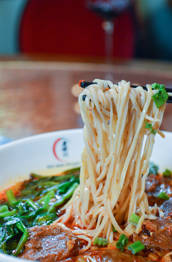 在芝加哥市中心最繁华的密西大道,老四川餐厅推出的内江牛肉面,面条是每天新鲜制作的细碱面,口感劲道弹牙。汤底用的是慢火久炖的大骨汤;红烧牛肉则选用上好的牛腩、牛腱,慢慢烧制,大块的”牛颤颤儿“入味、Q弹、软糯。一碗鲜红油亮、麻辣鲜香的内江牛肉面上桌,甜入骨,辣上瘾!