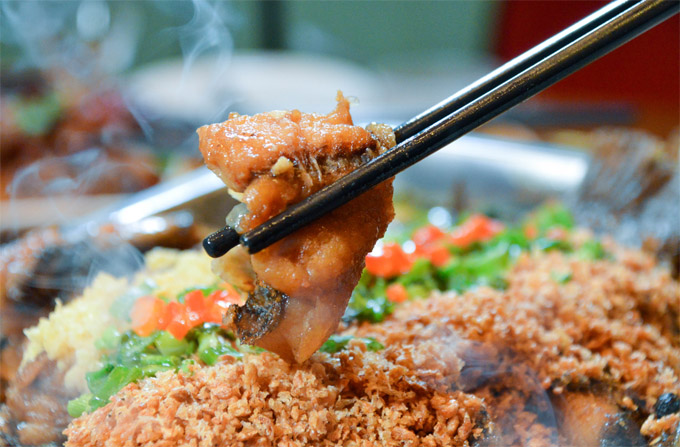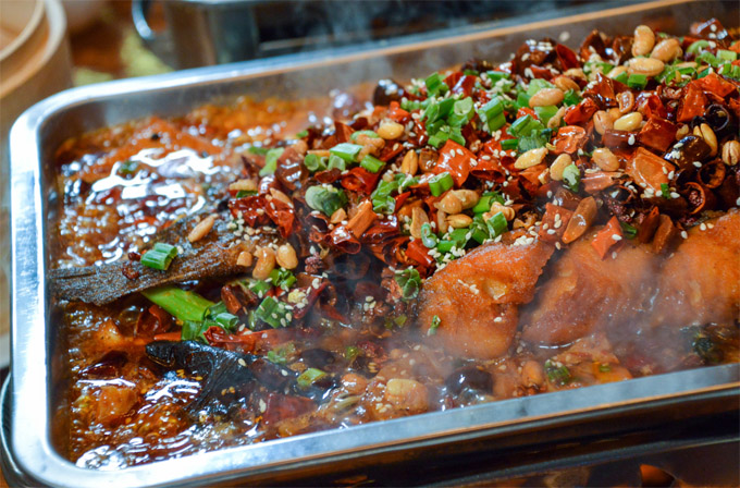 回到芝加哥,我与来自四川成都的特技川菜大师杨锡辉讨论了如何在芝加哥做出地道的巫山烤鱼。我们有从四川空运而来的调味料,有新鲜的游水活鱼,有四川主厨,融汇美食寻根之旅的心得,我们在马年新春即将到来之际做出了地道的巫山烤鱼,还分麻辣、蒜香两种,辣与不辣任选。