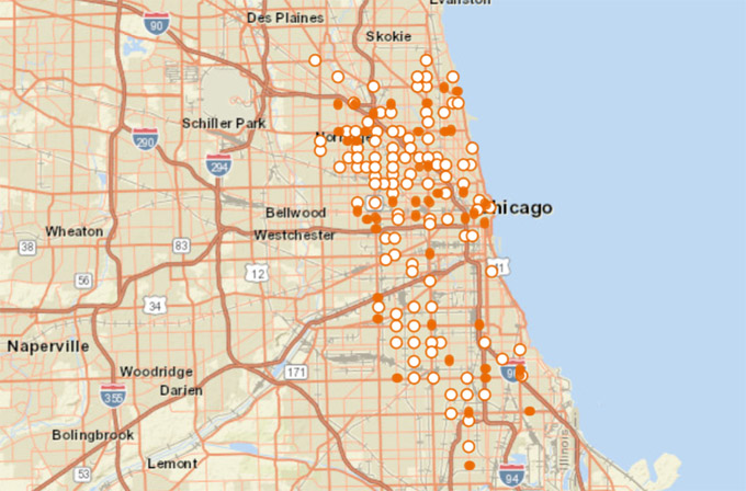 从地理分布上看,西北城区(90/94高速与290高速的夹角区域)红灯摄像头密集如矩阵,尤其是West Loop、Wicker Park、Logan Square社区;南城区相对较多,南环区、市中心、北城区相对稀疏。