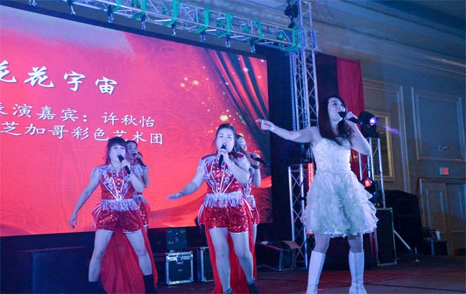 【芝加哥侨学网报道】大芝加哥地区华侨华人春节联欢晚会(芝加哥春晚)2月20日在芝城西郊朱瑞莲大酒店隆重举行,香港影视歌坛三栖明星许秋怡携香港艺人王书麒为1200多名观众倾情演绎流行经典,与芝加哥地区众多文艺团体及个人的歌舞节目交相辉映,为大芝加哥地区带来一场马年新春的文化盛宴。