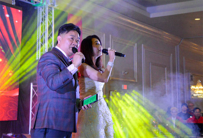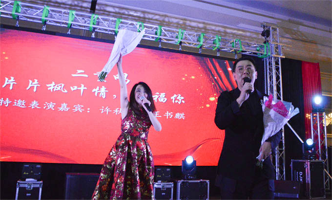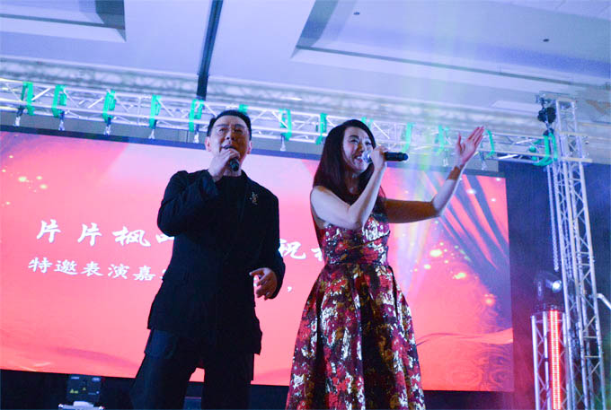 许秋怡与本地贵宾陈健明董事长(左)同台献艺