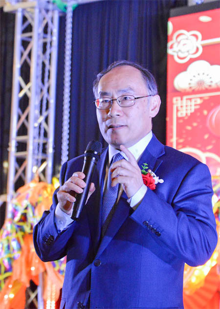 在当晚的嘉宾致辞环节中,中国驻芝加哥总领事王保东向大芝加哥地区华侨华人致以诚挚的新春祝福。王保东总领事强调,过去一年来华联会、科工专及芝加哥总领事馆领区内的众多侨团充分发挥各自优势,团结凝聚华侨华人的力量,为促进中美两国人民的友好交往作出了积极贡献。展望新一年,他希望大家不忘初心,自信自强,充分发挥桥梁和纽带作用,助力中国通美国中西部地区的互利合作。