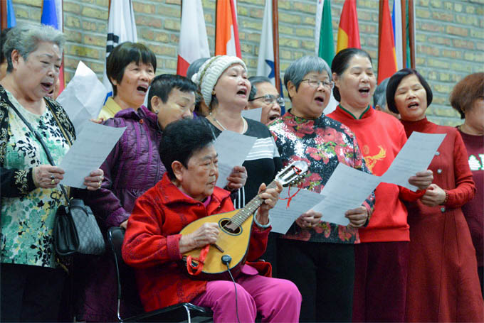 老少同乐,华人互助会老人俱乐部成员们表演歌曲弹唱