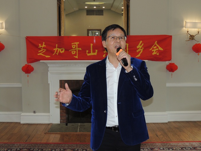 山东同乡会会长吕涛教授介绍说。芝加哥山东同乡会的宗旨是“团结友爱,互帮互助, 携手共进, 同创未来”,有近400名会员。感谢各位副会长的辛勤付出,感谢各位侨领、赞助商、文艺团体和个人以及新闻媒体的大力支持。