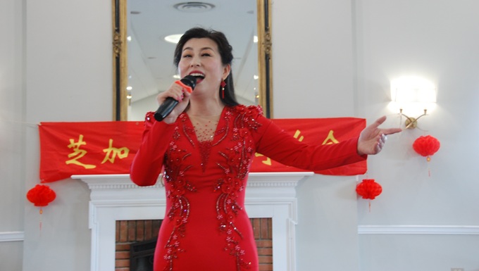 【芝加哥侨学网记者王坚报道】芝加哥山东同乡会2月28日在西郊瑞柏市(Naperville)白鹰社区中心隆重举办庆祝马年新春聚会。芝加哥地区山东老乡、侨界来宾欢聚一堂,大家共享丰盛的美食,欣赏精彩文艺节目。
