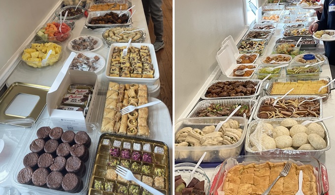 山东同乡们带来自己精心烹饪的山东水饺、山东凉面、山东酱货、土豆丝、卤排骨、呛芹菜花生米、卤猪蹄、土豆烧排骨、茴香水饺、酱肘子、口水鸡、牛肉炒西芹、炝拌莴苣、芝麻烧饼、大花卷、馒头 、红枣年糕、烤鸭、卤排骨、椒盐虾等山东特色美味佳肴。