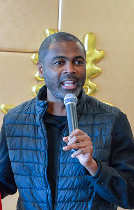 伊州第七选区国会众议员候选人拉肖恩·福特(La Shawn Ford),在芝加哥出生长大,曾担任过芝加哥公立学校教师、篮球教练,从事过房地产经纪职业,现为伊州议会第八选区众议员。福特当天向华裔老人家致予新春的祝福的问候,并重申他将为工薪阶层和移民社区代言,为中国城的社区发展争取联邦经费,与大家保持密切联系。