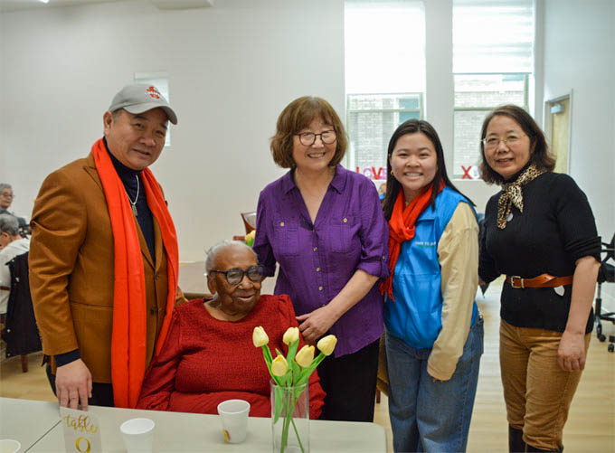 希林中心主任杨八林(右一)、希林社区发展部主任Sophia Luo(左一)与老人家们合影留念
