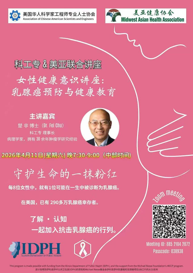 【芝加哥侨学网讯】好消息!美亚健康协会和科工专联合举办
