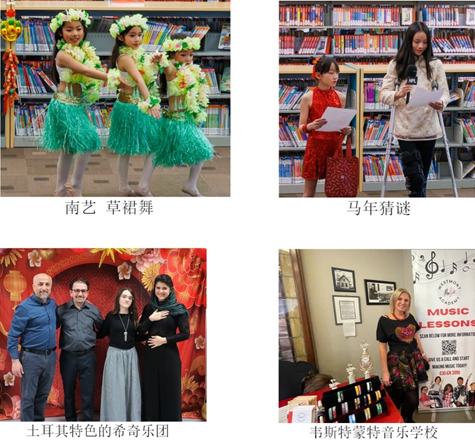 图书馆ESL英语学习小组不仅带来了合唱节目,还表演了充满活力的广场舞,与黄河艺术团的演员们共同展现了华人社区文艺团体的风采。