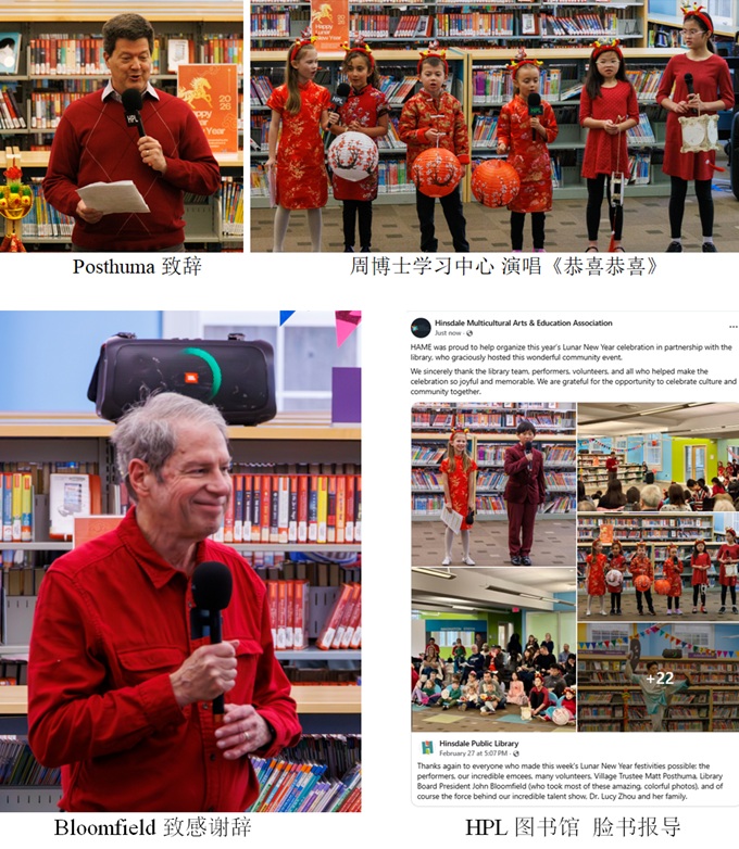 【芝加哥侨学网讯】2026年2月15日,芝加哥西郊欣斯代尔(Hinsdale)市(村)迎来了第三届“多元文化庆春节”系列庆祝活动。本届活动由社区非营利组织HMAE(多元文化艺术与教育协会)主办,共举行三场庆祝活动:首场在欣斯代尔中央高中举行,第二场在欣斯代尔公共图书馆举行,第三场则在当地契约教会举行。连续三个周末的系列庆祝,充分体现了跨文化、跨民族、跨代际和跨社区的特点,成为社区居民共同参与、共同分享的文化盛会。