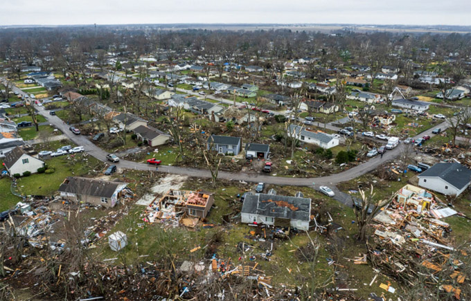 本周二的龙卷风彻底摧毁了芝加哥南郊至少30栋房屋,并带来了创纪录的冰雹