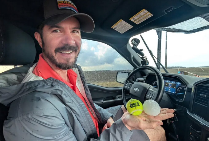 北伊州大学教授Victor Gensini展示超级大冰雹:宽7英寸,重1磅多!