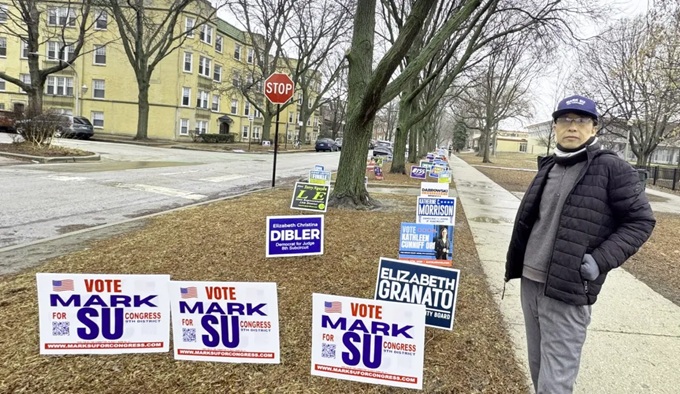 Mark Su 在芝加哥投票站