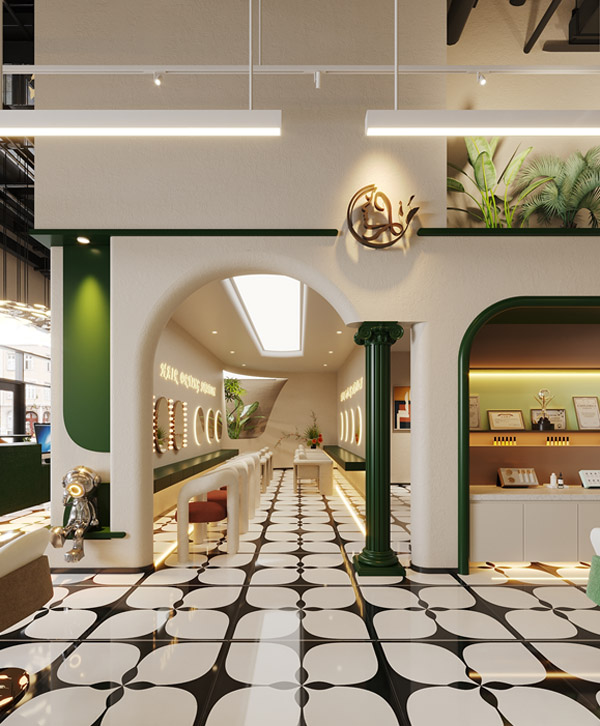 这个项目的定位非常明确:在既有两层商业空间里完成一次完整的室内改造,并形成 “公共高效率 + 私密高体验”的两段式逻辑——一层负责快速接待与高频服务,二层承接更安静、更沉浸的深度体验与VIP服务。