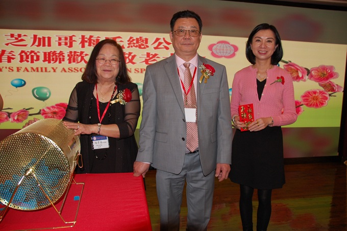【芝加哥侨学网记者王坚报道】3月23日晚,在芝加哥市中国城富丽华大酒楼,芝加哥梅氏总公所隆重举办春节联欢会暨敬老大会。500多位梅氏宗亲和各界友人出席了大会。全美梅氏公所梅国栋理事长;来自纽约的梅蔼明理事长;来自缅城的最资深的梅忠和元老;来自波士顿的梅锡锐元老;来自芝加哥的梅楹仲元老伉丽;来自芝加哥的梅新立元老伉丽;来自芝加哥的梅楹活元老等出席了大会。