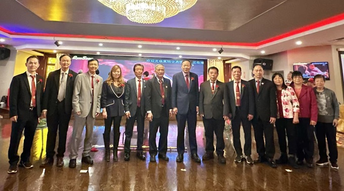 黄军英参赞、曹洁领事与侨领合影