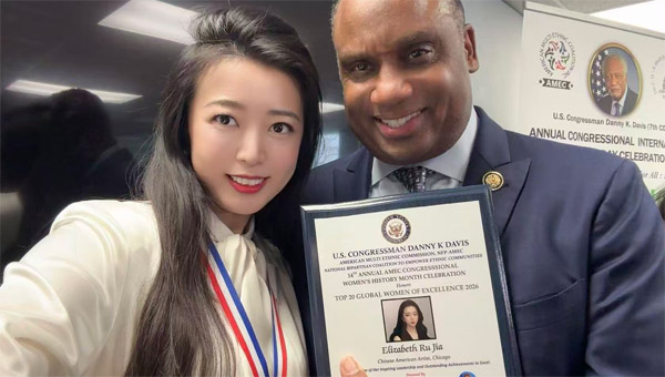 获得2026“全球20位杰出女性”国会奖章的刘红博士是大芝加哥地区著名侨领、美亚健康协会创办人,多年来为侨社发展、亚裔社区的健康与社会福利事业做出了杰出贡献。获奖者贾儒则是知名华裔画家,活跃在中美文化交流与社区慈善事业。