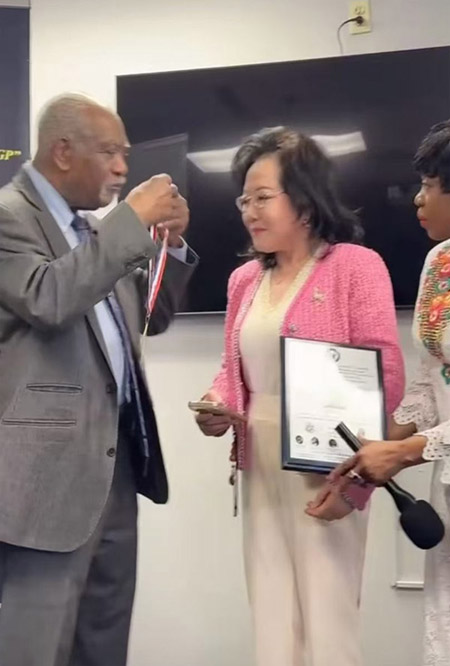 芝加哥地区著名侨领、美亚健康协会(MAHA)创办人刘红博士(Dr. Hong Liu),旅美艺术家贾儒(Elizabeth Ru Jia)获此殊荣,并应邀前往华盛顿接受国会奖章。