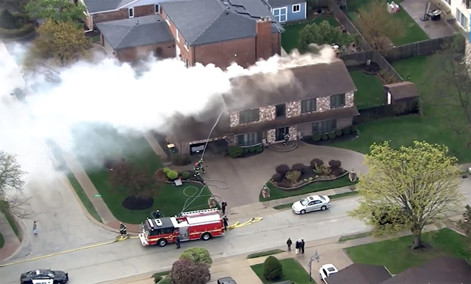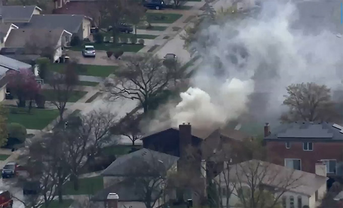4月16日上午,北郊Morton Grove一处民宅遭雷击起火