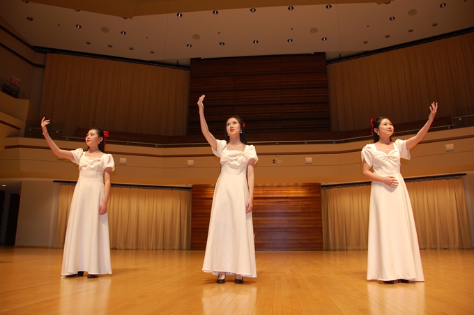 “旋律精灵”组合Zoe Ren、Yiyao He 和 Miranda Li演唱三声部作品《世界赠与我的》