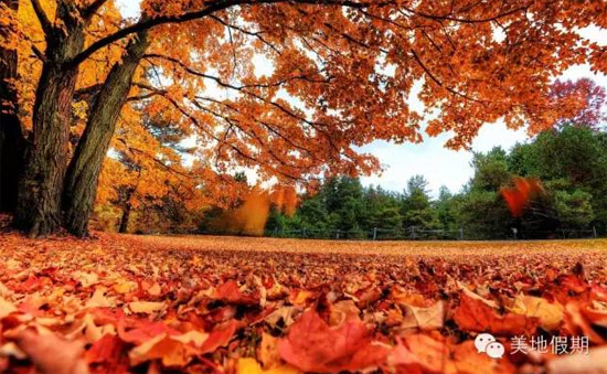 秋天是加拿大最迷人的季节。每年九月十月的加拿大不管是大街小巷、城里城外,山涧湖边都是一片红黄交错、错落有致的枫叶,远远望去就像是上帝不小心打翻的调色盘一样。以山为单位的枫叶林从北往南变红,一直延伸至尼亚加拉大瀑布地区,给气势蓬勃的水流增添了一抹风情万种的韵味。虽然每年的变色时间有所差异,但普遍在十月中达到高峰。