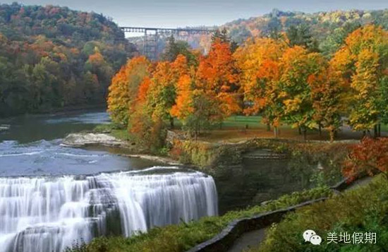 作为世界第一的跨国大瀑布,尼亚加拉一直是北美最受欢迎的景点之一。位于美国水牛城和加拿大安省之间,由三部分组成,分别是马蹄形瀑布、美利坚瀑布和新娘面纱瀑布。在美国边境只能看到瀑布的侧面,在加拿大却能看到瀑布的全貌。上游的水流来到悬崖,从185英尺的高度倾泻而下,犹如千军万马般的气势让人不得不感叹大自然的威严与神奇。尼亚加拉的秋色虽然不如上述景点的梦幻,但绝对壮丽无比。远眺瀑布,周围一片红黄绿相交映,加上迷蒙的水雾,以一种高调狂放的姿态展示着她的骄傲。