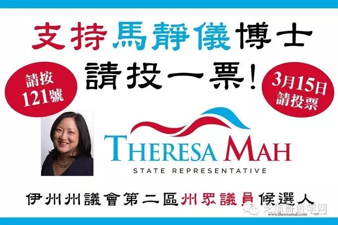 今年一月,周麓波先生在他发表的《积极参与投票,争当美国政治的关键少数》一文中,倡议我们“不做哑裔,为了我们的将来,一定要投票”。在这里,我作为一名 普通选民与大家分享我为什么要投票支持马静仪博士(Theresa Mah #121)竞选伊州众议院议员(IL StateRepresentative)。