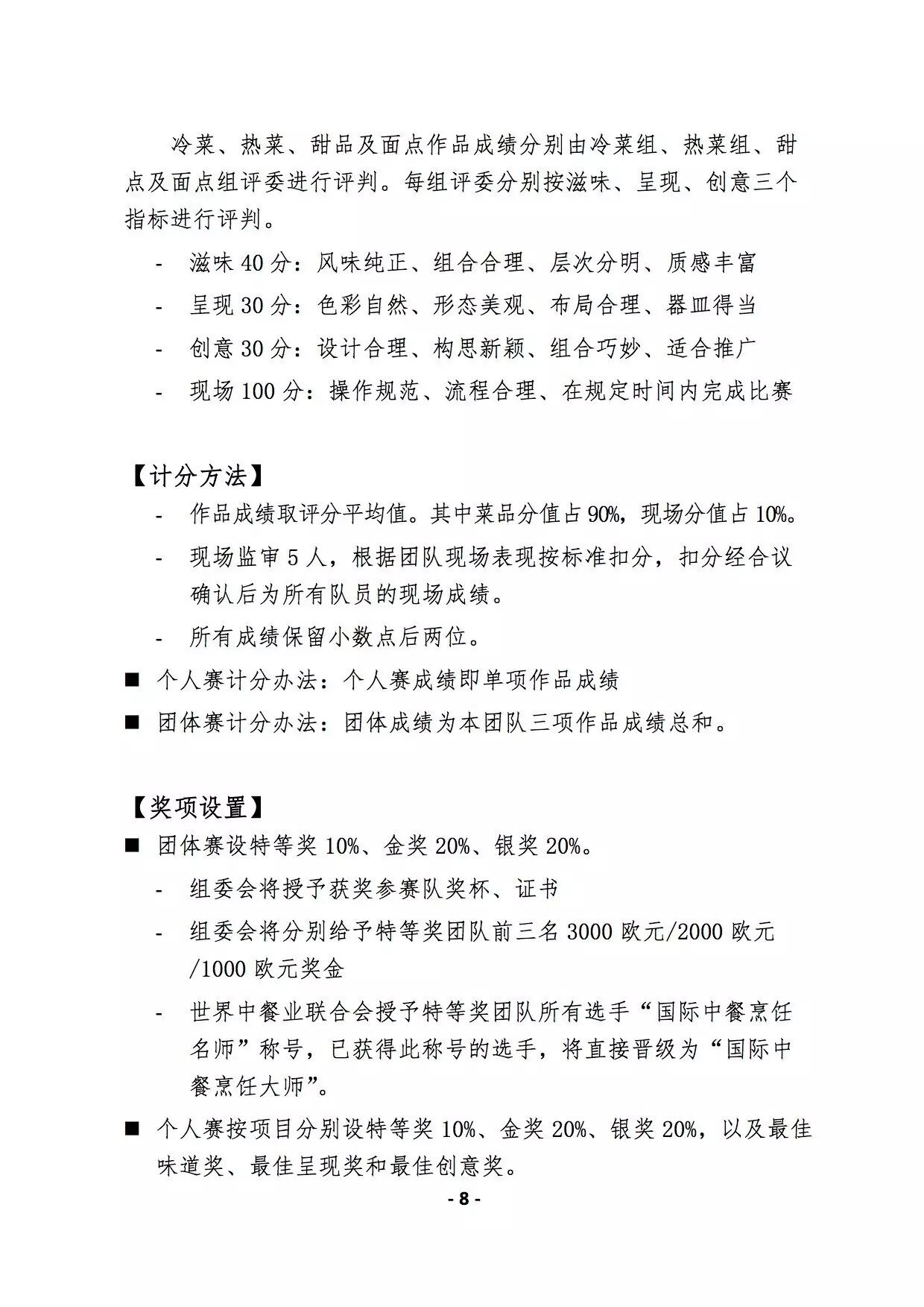第八届中国烹饪世界大赛,补充材料: