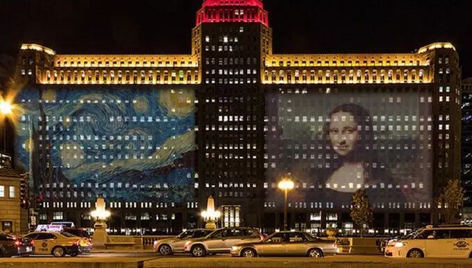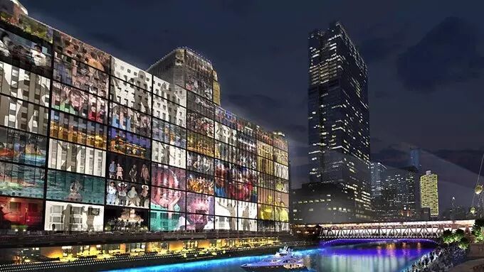 【芝加哥侨学网编译】芝加哥市提出已久的“梦幻芝加哥”计划,2018年将在市中心“商品大厦”(Merchandise Mart)启动。届时,“商品大厦”面向芝加哥河的 3英亩墙面,将在光影投射下成为绚丽多彩的巨大艺术画布,为芝加哥带来梦幻般的城市新夜景。