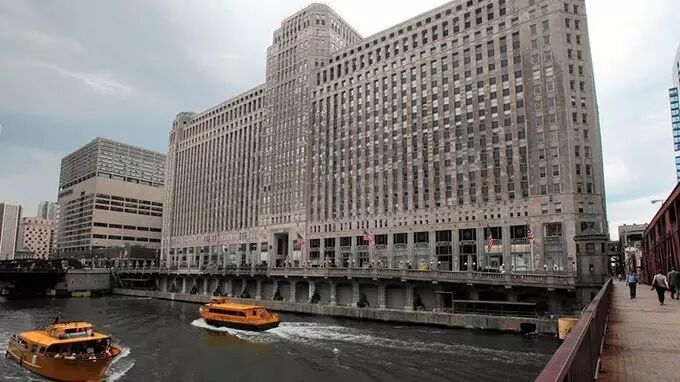 据悉,“商品大厦”有25层之高,宽度横跨2个街区,在1930年投入使用时为当时世界上楼体面积最大的建筑。由于面积巨大,该大楼曾一度独占一个邮编(60654),直到2008年邮局将其与附近区域的建筑编入了一个邮编。